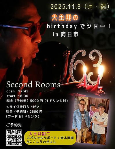出演 | 大土井裕二 *スペシャルサポート:増本直樹 *MC:こうのきよし ◯1st stage ソロステージ ◯2st stage セッションステージ ◯トークコーナーあり ![]() ◯生配信チャットでもお祝いメッセージをお待ちしております! *整理券番号順の入場になります!(座席は自由) *状況により内容等が変更になる可能性がある事をご了承くださいませ。 <会場参加のご予約、お問い合わせ先> odoidesyo.mukousi2@gmail.com 件名に「11/3向日市」 ◯お名前 (同行者のお名前もお願いします) ◯連絡先電話番号 ◯打ち上げ参加の有無 をご記入の上、お申し込み下さい。 整理券番号付き予約完了メールを返信いたします。 <有料配信> ●「ツイキャス」https://twitcasting.tv/ へ登録をお願いします。(登録料無料) 配信開始 18:30 配信チケット料金 2,500円 当日より14日間視聴可能 |
